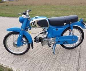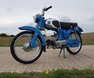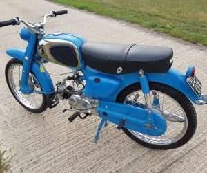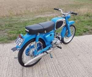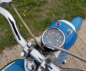The idea being that maybe one day they could go out together as the lad was ok to ride up to a 50cc bike. Unfortunately and so often regrettably the way, the dad passed away before they were finished so were never ridden. They spent the next few years standing in an integral garage as the family didnt really know what to do until it was decided to sell them both to a friend of ours. Originally he kept this one and we bought the other, an equally as nice black C110 model, but after fitting an electronic ignition system and registering it ( been off the road for so long they had dropped off the DVLA register) he rode it 10 miles over a coup[le of days and decided it was not for him so we bought this one as well.