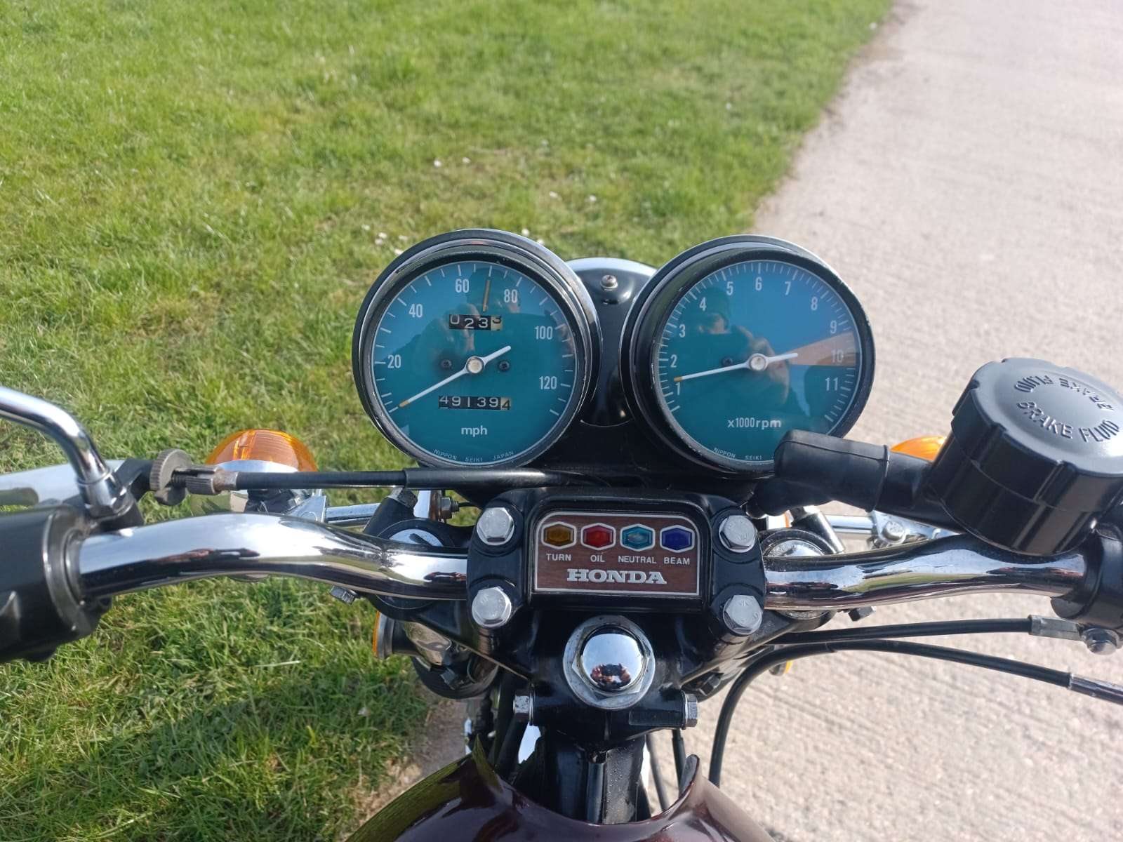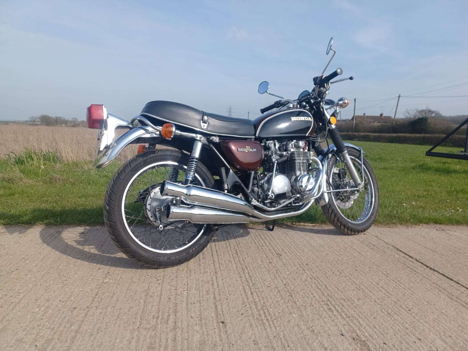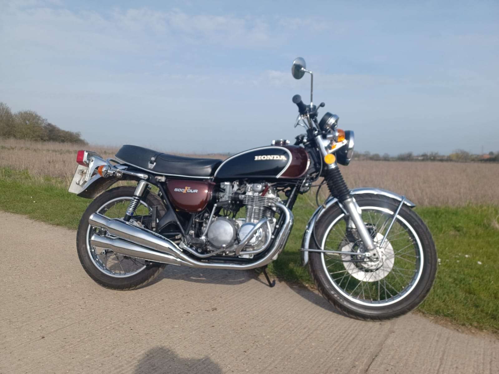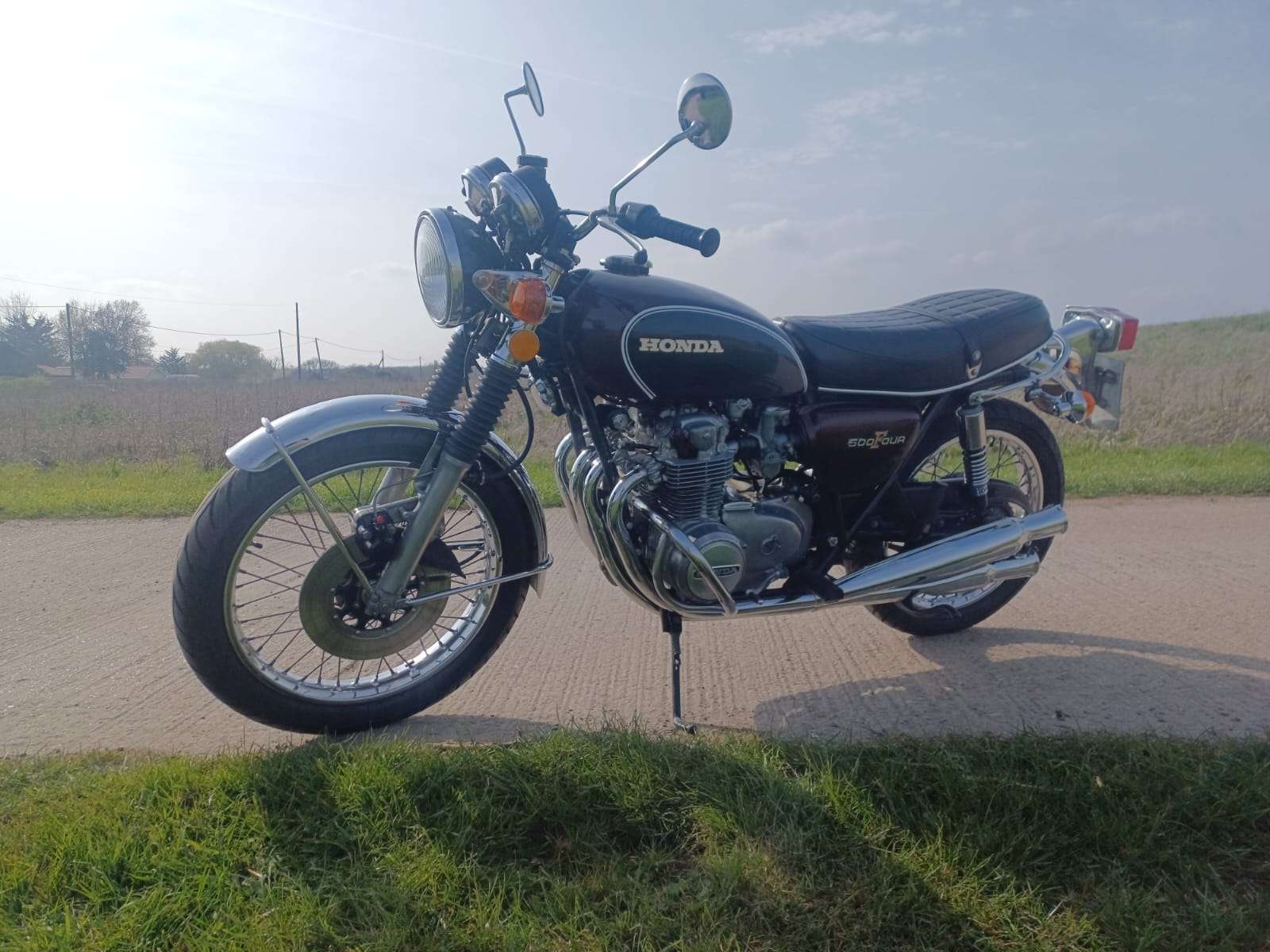 Since arriving in the UK in 2018, this 1972 CB500/4 Honda has only had the one registered owner. So it figures it was him, judging by the “before” picture, plus the wad of invoices for some of what has obviously been spent on it, that make it look like it does now. As such, on arrival with us, yes we had to fettle it a bit from where it had been standing recently, but cosmetically it needed little more than a good dust off and polish. Now starting on the button and riding very nicely. The new exhaust system it has fitted ( not cheap I know, and the disirable, correct “Tulip” style to boot!), looks great and sounds more or less standard. Gearbox and clutch are nice and smooth, brakes, electrics etc all work as designed, so its pretty well ready to go and just be enjoyed.