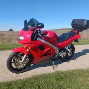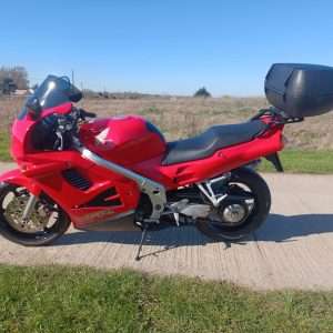 If your reading this listing you dont need me to tell you just how “right” Honda got it with the VFR750 range in the late 90s. They quickly got the reputation of being an almost unbreakable bike capable of mixing it with the then crop of full sports bikes or eating up the miles on a European tour. Honda definitely over engineered them with their gear driven cam system to get away from the poor reputation of the cam chain engine’d V4s that preceded them. This very nice example, a 1997 Fv model has only 30K on the clock and is in all round great condition. While in its history file there are all its old MOTs to back up the low mileage ( less than 100 miles in the last 3 as the owner had more or less given up riding but it still went to the MOT station each year) unfortunately we do not have the service book so while we are told it had new chain and sprockets, front brake callipers over hauled with new seals, new tyres front and rear, plus an oil and filter change, all in the last 200 miles as well as an up rated regulator /recifier and a clutch slave cylinder rebuild previously, we cannot prove this but “eyes dont lie” and its obviously been done. The bike also has the expensive Oxford products heated grips, LED head light conversion, a Scott oiler and as you can see in the pictures a nice size rear rack and top box, plus the pillion seat rear cover. It does have a Spyball alarm fitted but i just dont trust them so have not tried to arm it, just in case, as the bike runs so well as it is.