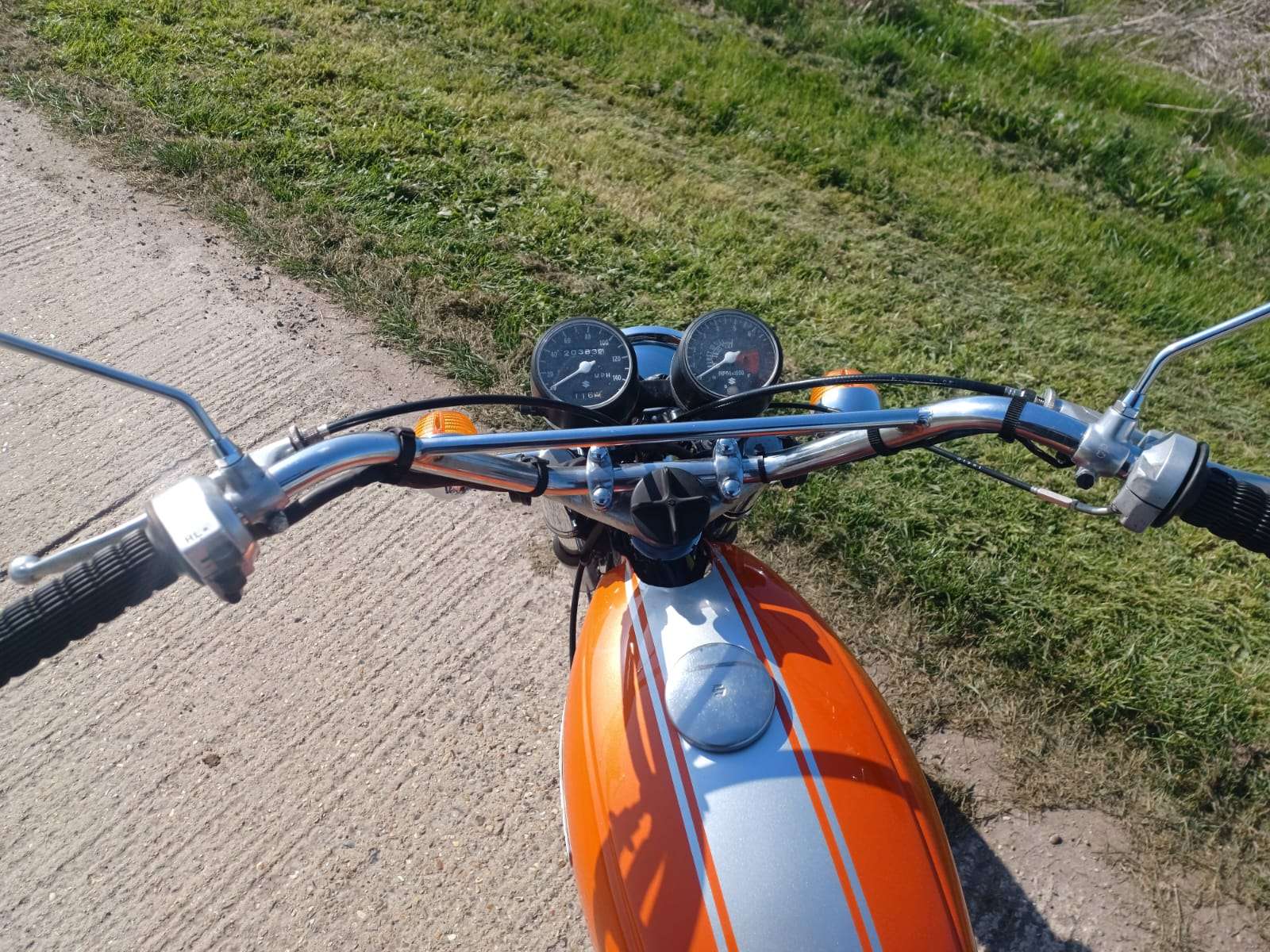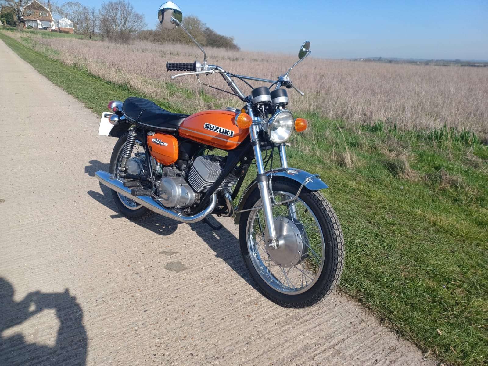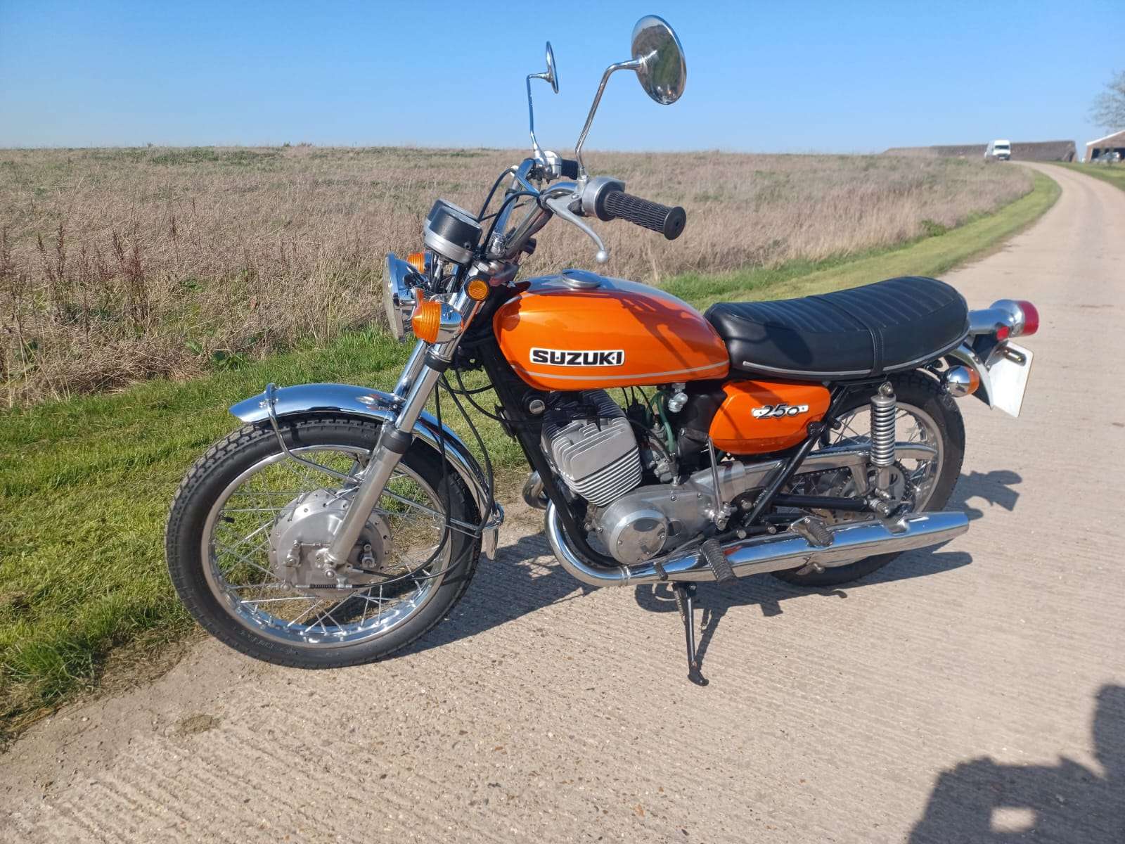 Where do we start with this 1971 Suzuki T250 “Hustler”? Suffice to say that right now i wish i had a secretary as i hate this typing lark! Imported from Texas where the poor old thing had been left abandoned for so many years it was sun burnt and been left to get into a terrible state, but on the flip side there was no rust or rot. It had lost most of its chrome work and the fuel tank was doing a good impression of a Tetley t-bag where the old fuel had eaten it. Originally it was imported by someone we know, to break for parts but when i saw it, i felt sorry for it and throwing my cheque book out of the window, thought we can and will restore it. This decision was helped by the fact the engine was free and had great compression.