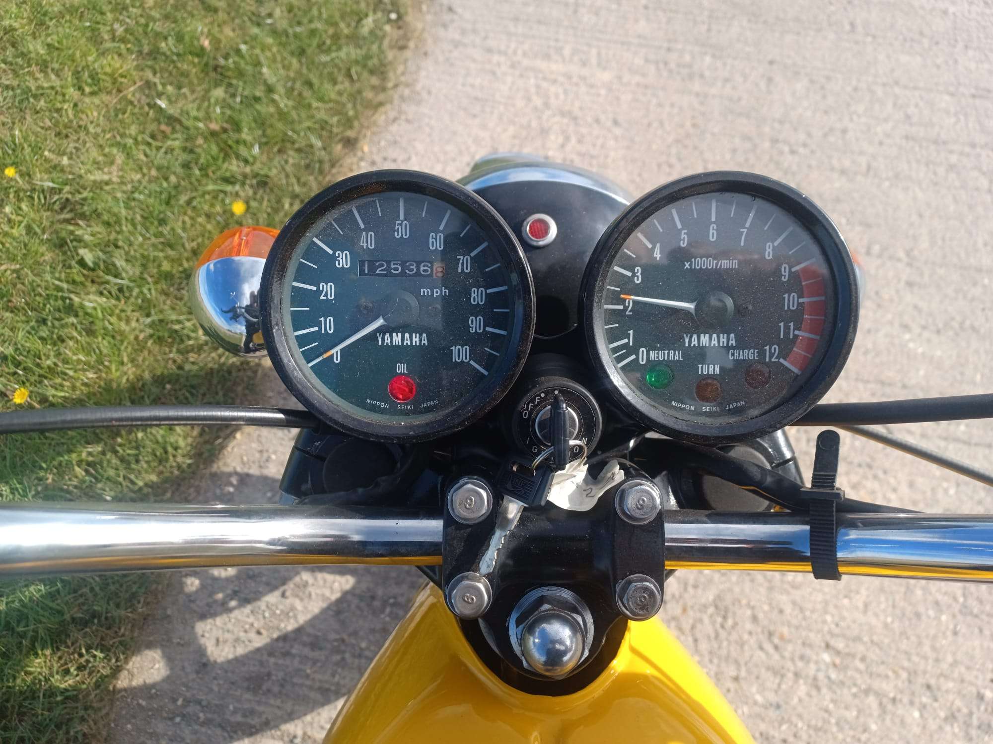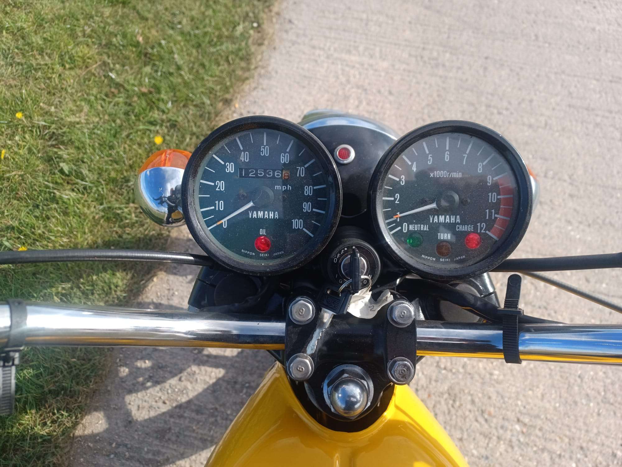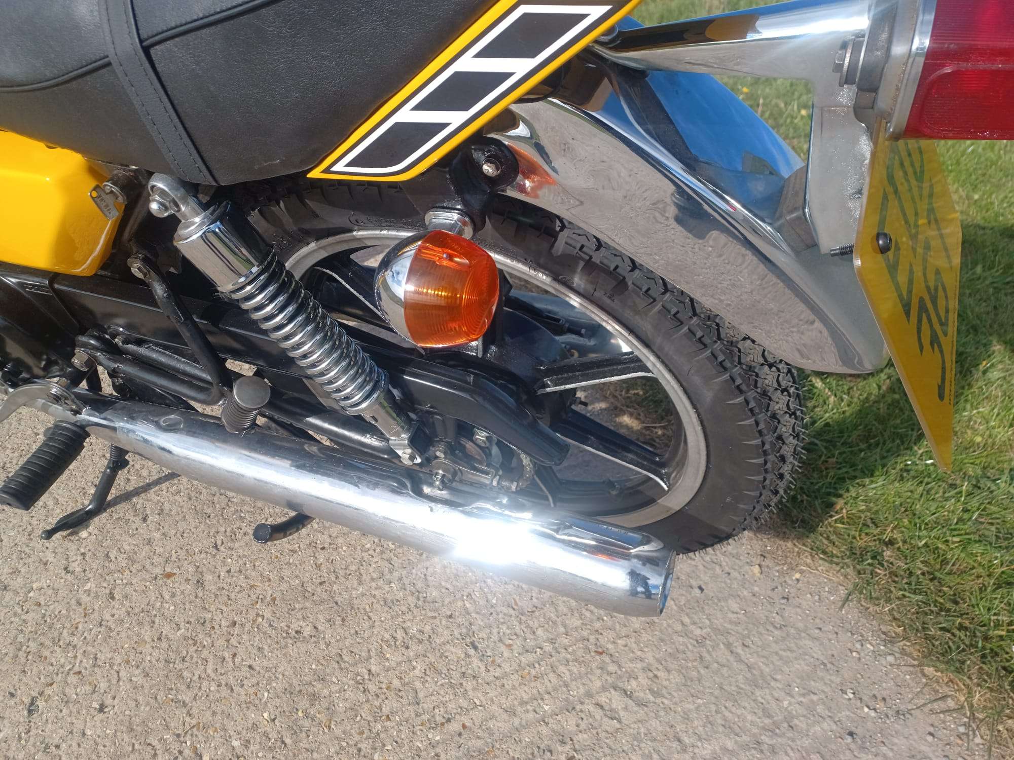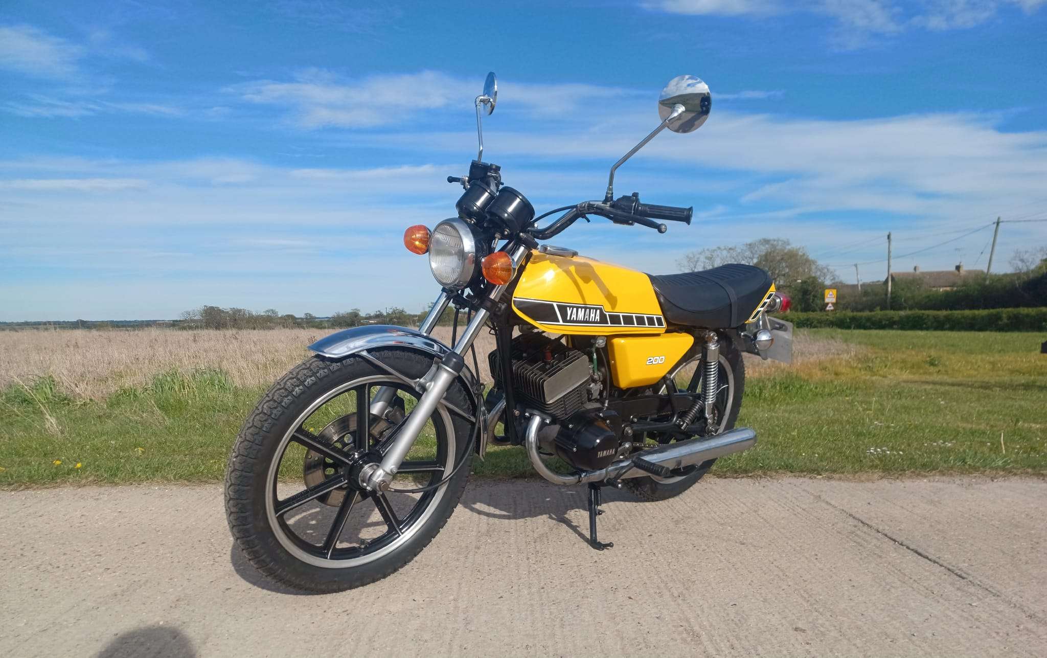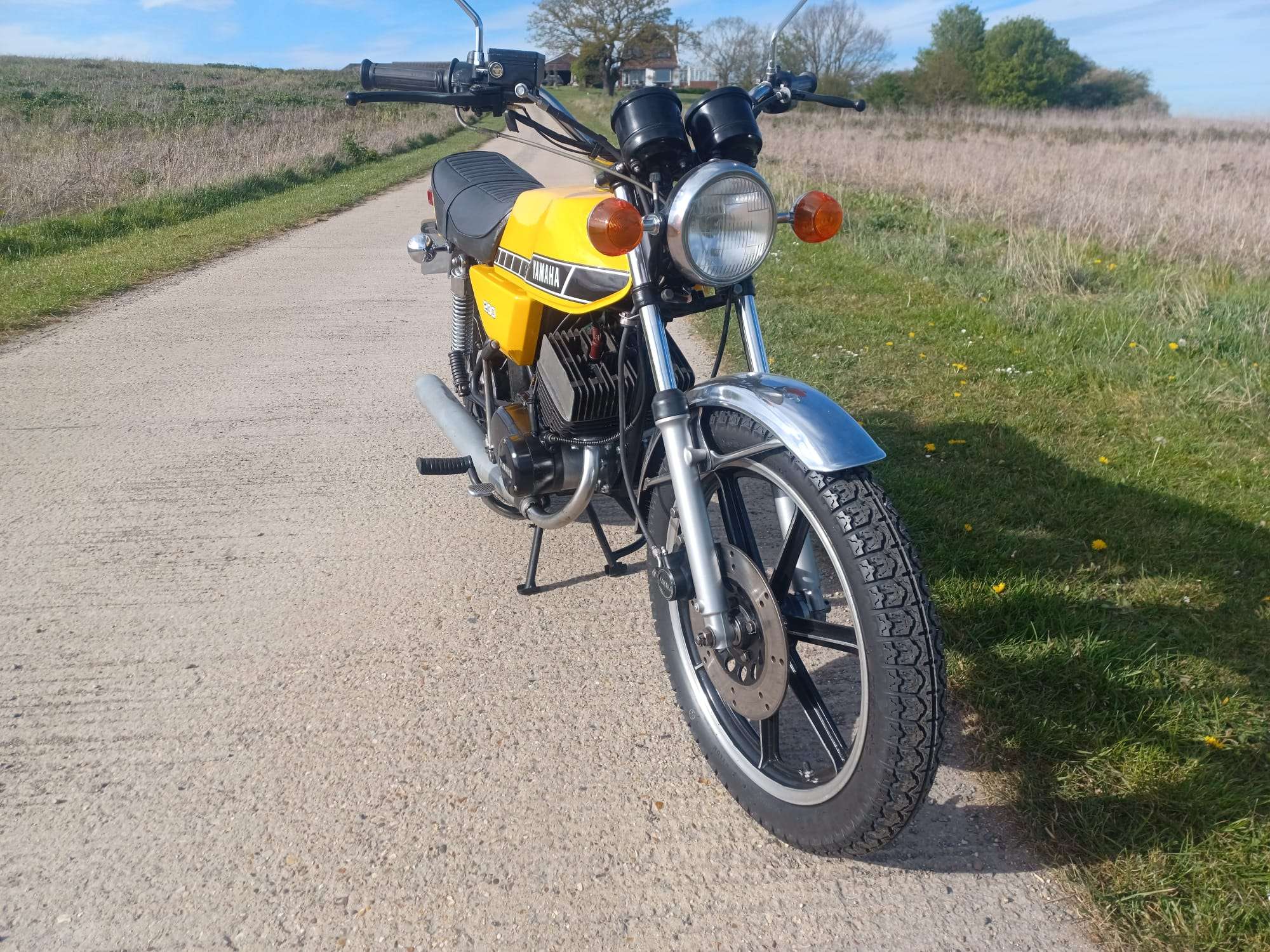 But what we do have now is a very pretty 1979 RD200 thats fully functioning, yes “even” the electric start! That runs and rides very nicely. Cosmetics are very good apart from the original silencers have some dinks on and are a bit dull but hopefully priced sensibly enough for its new owner just to leave them as is, have seen far worse, or replace/rechrome them. Its a great wee bike that will put a smile on your face each time you see it. G